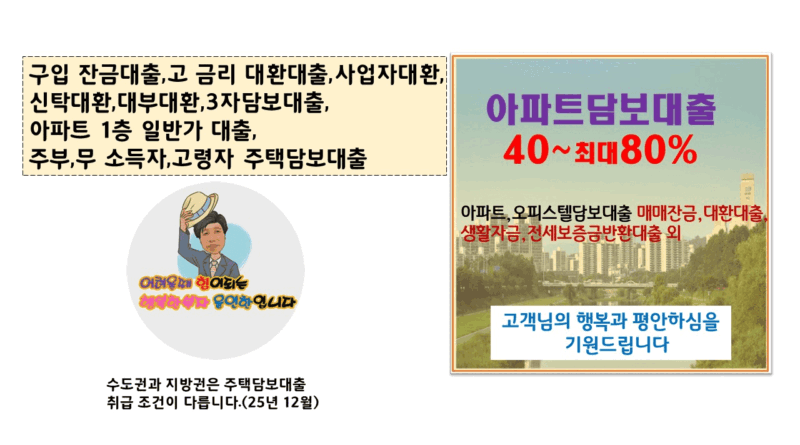 1.아파트 구입자금 최대 80% 가능합니다